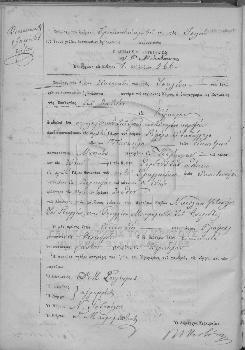 ΛΗΞΙΑΡΧΕΙΟ ΚΕΡΚΥΡΑΣ - Ληξιαρχικές Πράξεις Γάμων  [1841 - 1932]