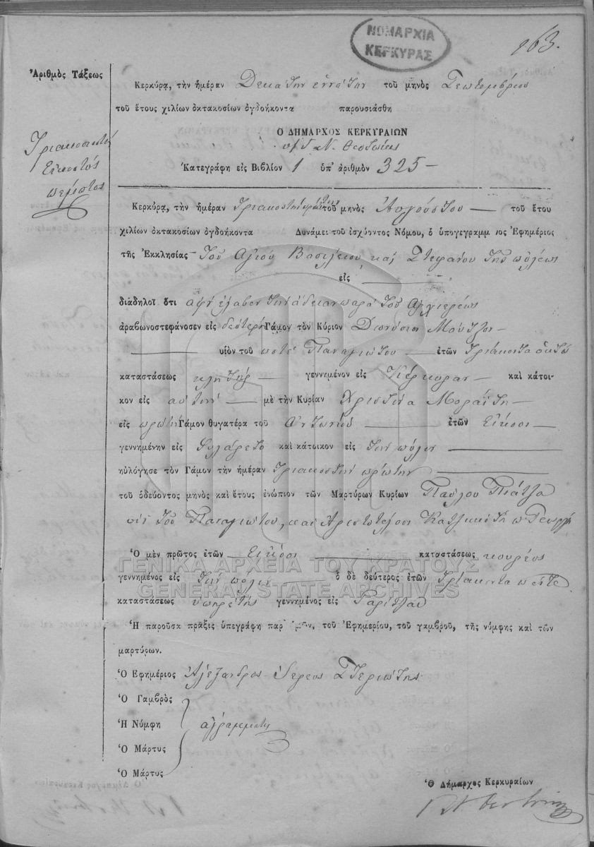 ΛΗΞΙΑΡΧΕΙΟ ΚΕΡΚΥΡΑΣ - Ληξιαρχικές Πράξεις Γάμων  [1841 - 1932]