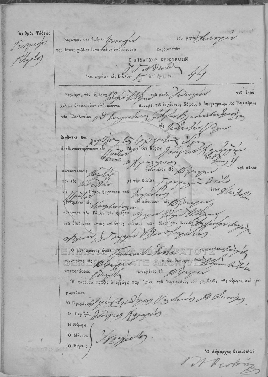 ΛΗΞΙΑΡΧΕΙΟ ΚΕΡΚΥΡΑΣ - Ληξιαρχικές Πράξεις Γάμων  [1841 - 1932]