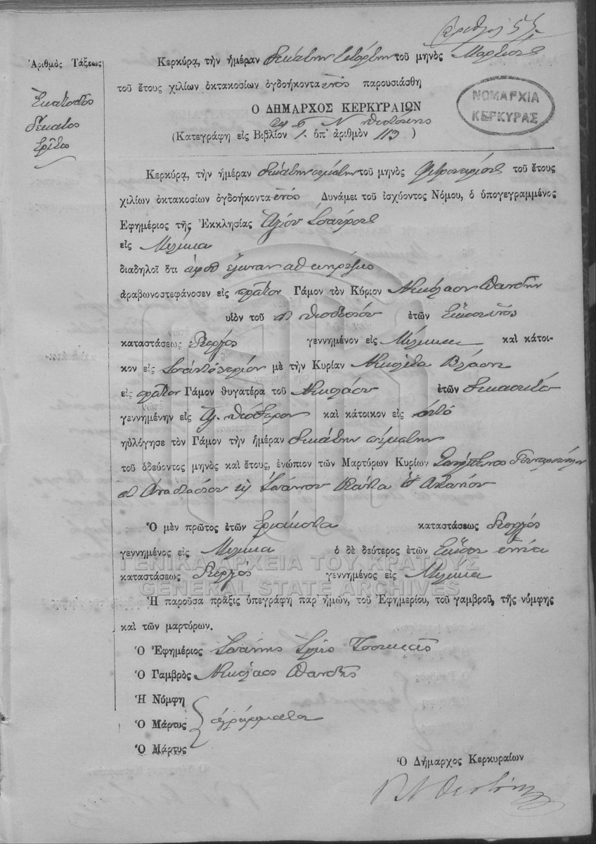 ΛΗΞΙΑΡΧΕΙΟ ΚΕΡΚΥΡΑΣ - Ληξιαρχικές Πράξεις Γάμων  [1841 - 1932]