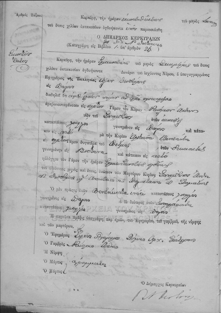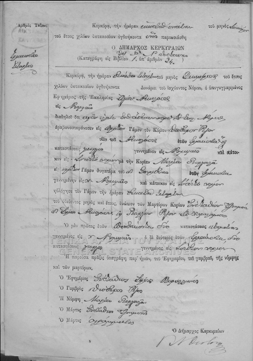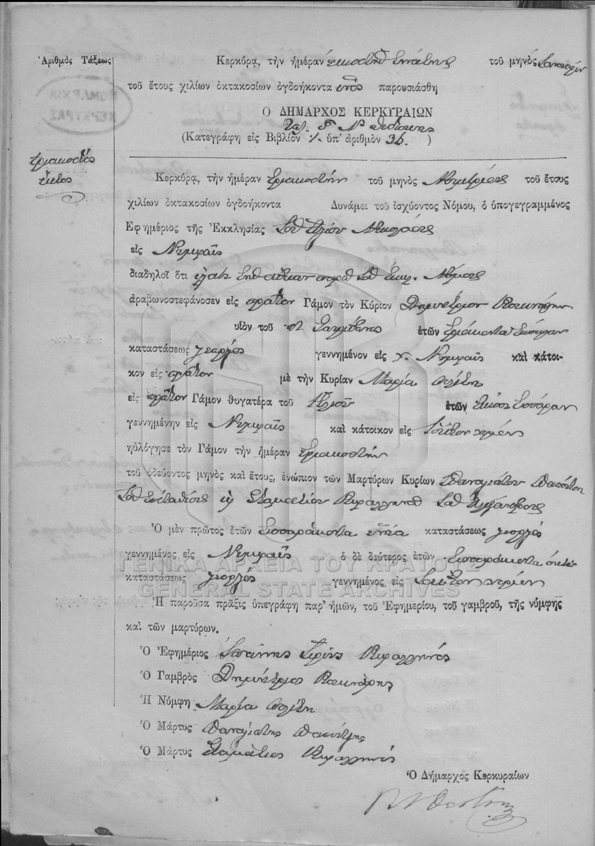 ΛΗΞΙΑΡΧΕΙΟ ΚΕΡΚΥΡΑΣ - Ληξιαρχικές Πράξεις Γάμων  [1841 - 1932]