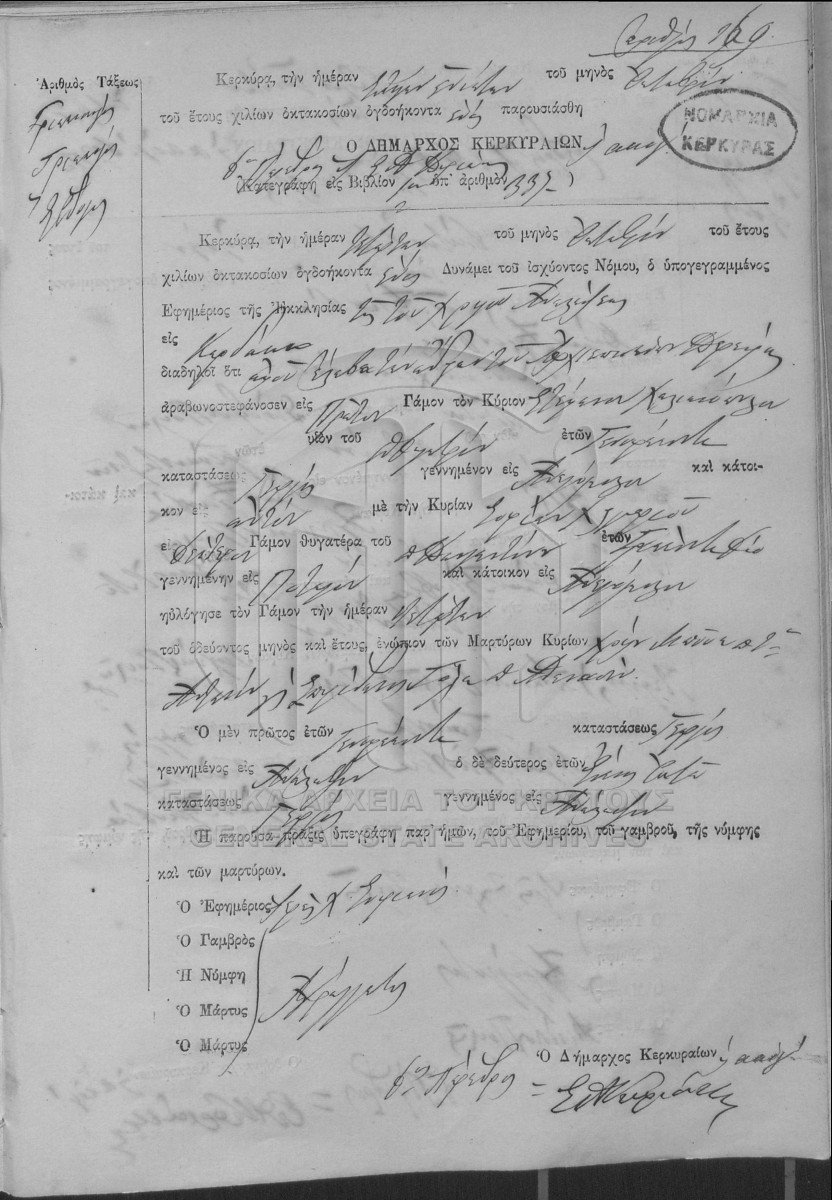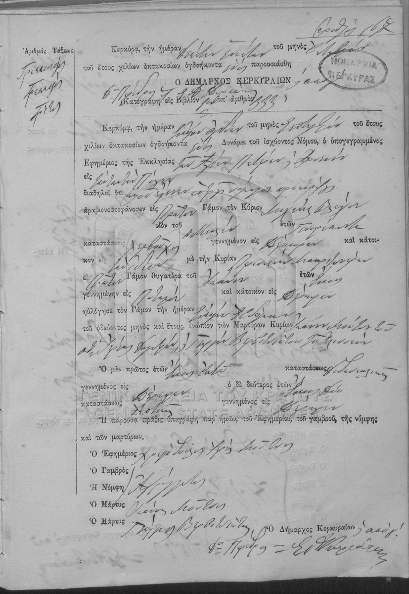 ΛΗΞΙΑΡΧΕΙΟ ΚΕΡΚΥΡΑΣ - Ληξιαρχικές Πράξεις Γάμων  [1841 - 1932]