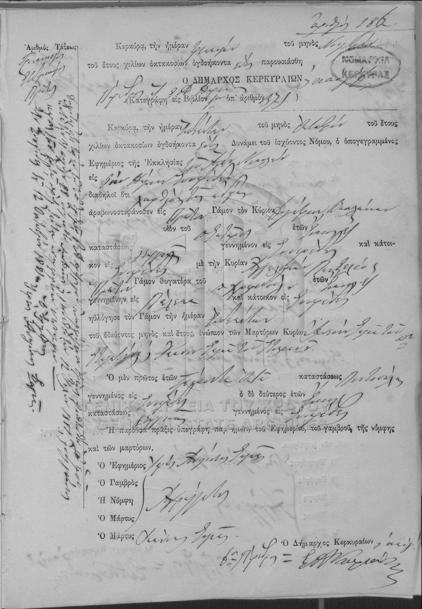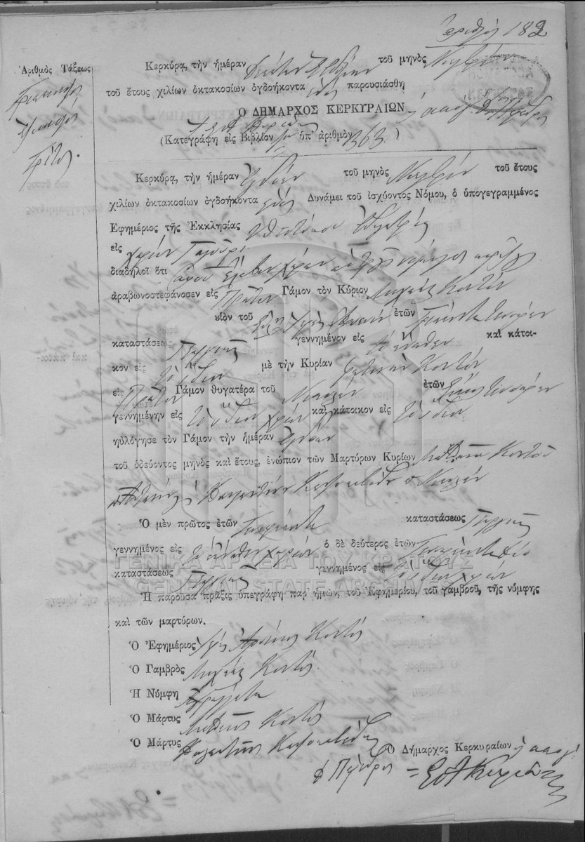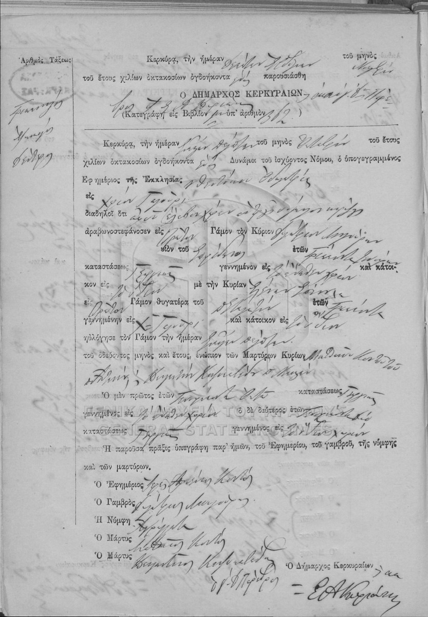 ΛΗΞΙΑΡΧΕΙΟ ΚΕΡΚΥΡΑΣ - Ληξιαρχικές Πράξεις Γάμων  [1841 - 1932]