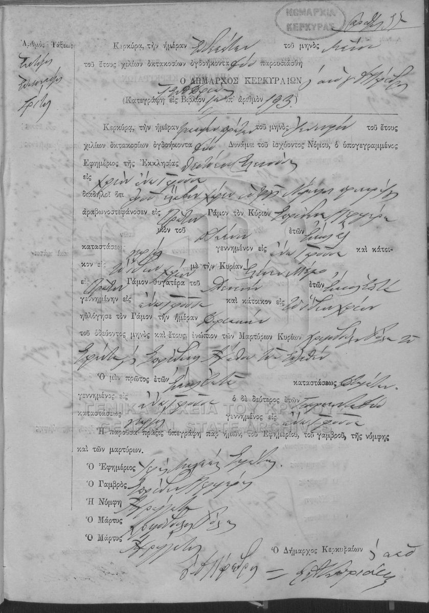 ΛΗΞΙΑΡΧΕΙΟ ΚΕΡΚΥΡΑΣ - Ληξιαρχικές Πράξεις Γάμων  [1841 - 1932]