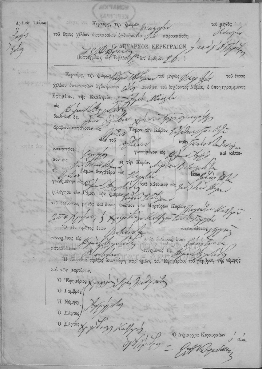 ΛΗΞΙΑΡΧΕΙΟ ΚΕΡΚΥΡΑΣ - Ληξιαρχικές Πράξεις Γάμων  [1841 - 1932]