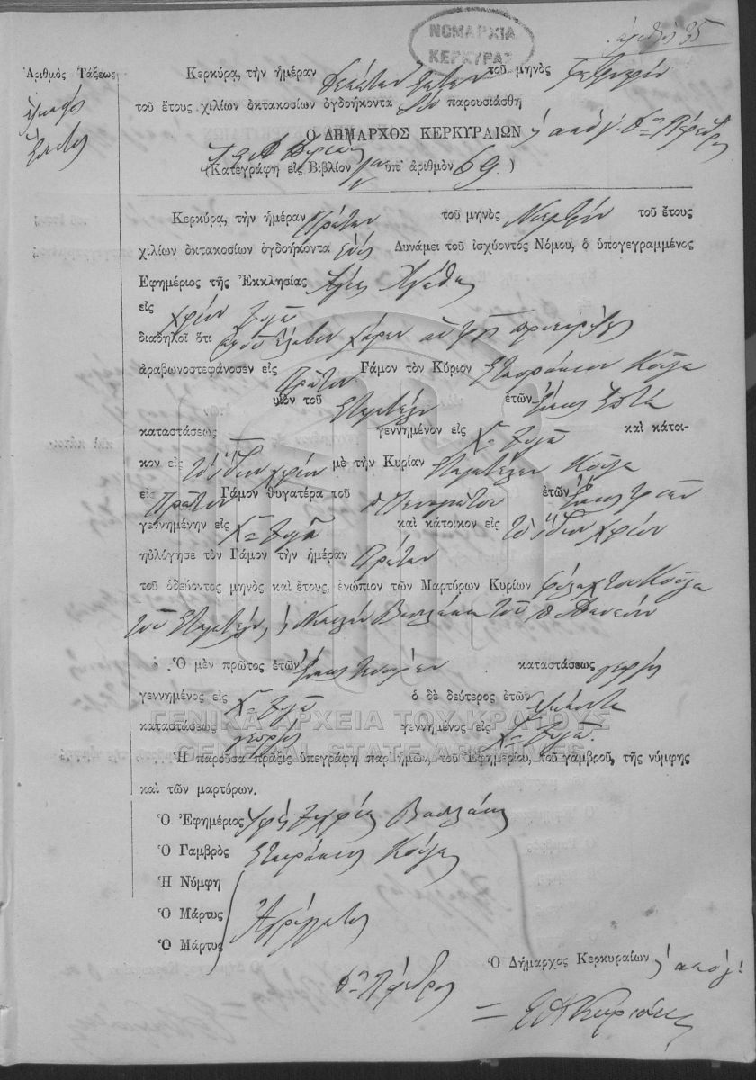 ΛΗΞΙΑΡΧΕΙΟ ΚΕΡΚΥΡΑΣ - Ληξιαρχικές Πράξεις Γάμων  [1841 - 1932]
