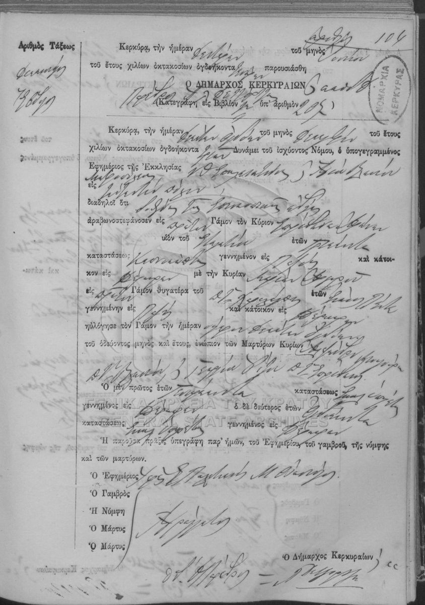 ΛΗΞΙΑΡΧΕΙΟ ΚΕΡΚΥΡΑΣ - Ληξιαρχικές Πράξεις Γάμων  [1841 - 1932]