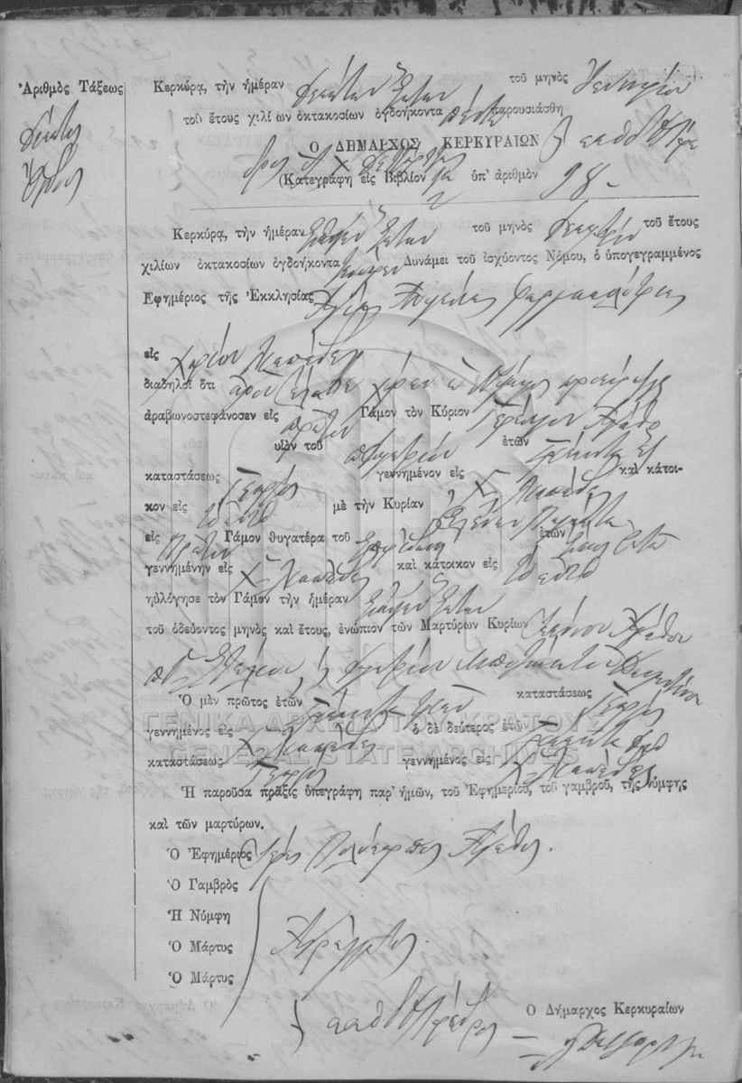 [Fonds] GRGSA-KER_REGM00 ΛΗΞΙΑΡΧΕΙΟ ΚΕΡΚΥΡΑΣ - Ληξιαρχικές Πράξεις Γάμων [1841 - 1932] Contents: Αριθμός πράξεων 1 - 324. |