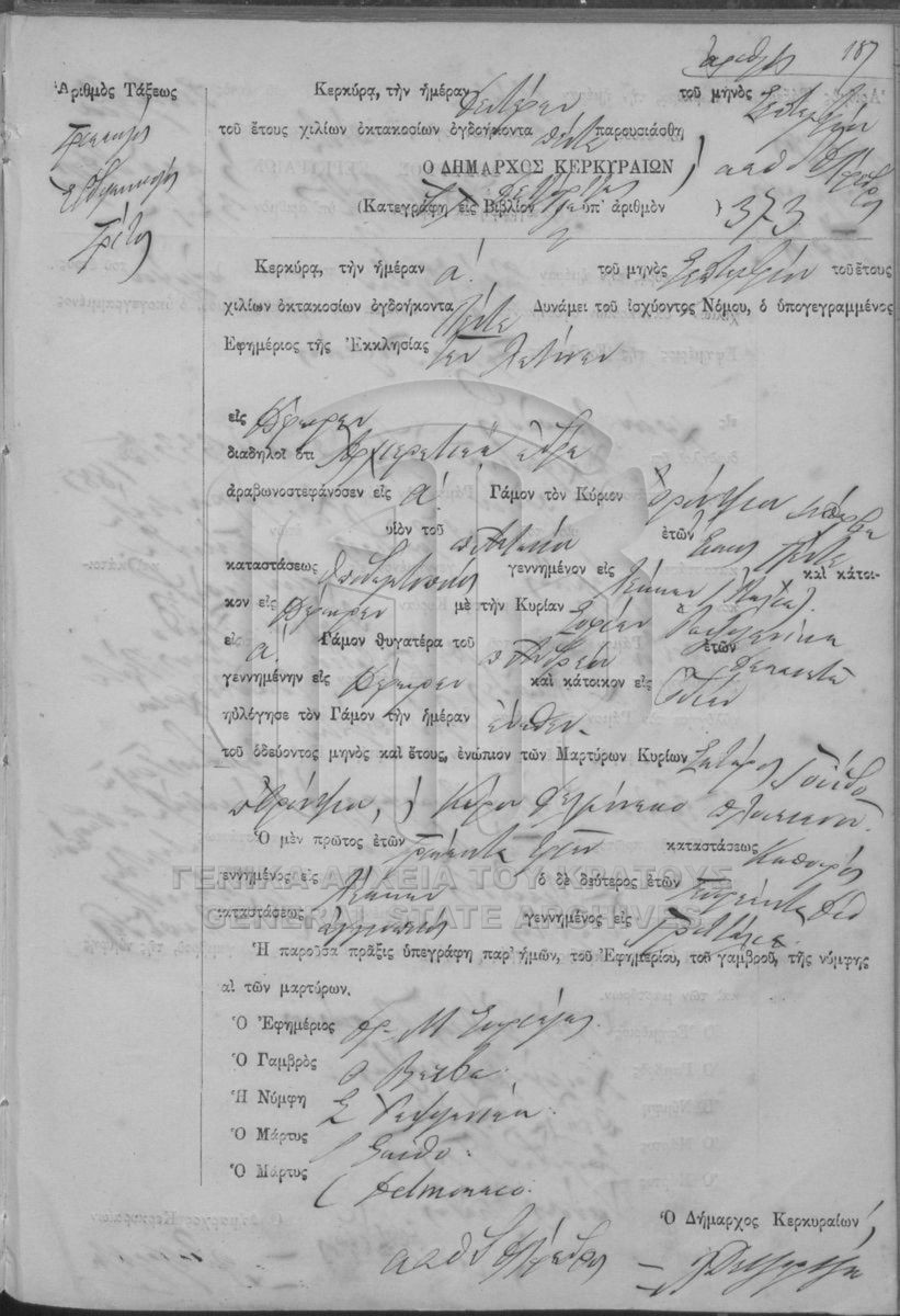 ΛΗΞΙΑΡΧΕΙΟ ΚΕΡΚΥΡΑΣ - Ληξιαρχικές Πράξεις Γάμων  [1841 - 1932]