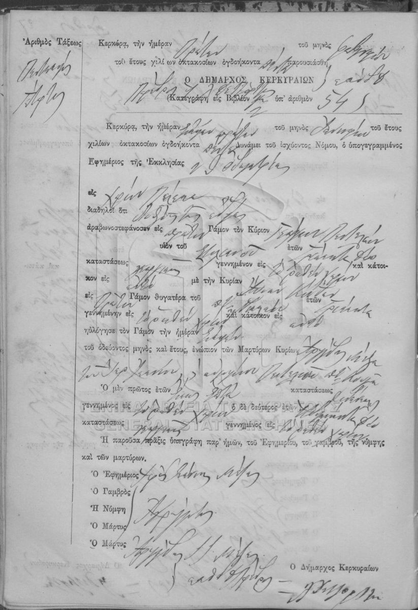 [Fonds] GRGSA-KER_REGM00 ΛΗΞΙΑΡΧΕΙΟ ΚΕΡΚΥΡΑΣ - Ληξιαρχικές Πράξεις Γάμων [1841 - 1932] Contents: Αριθμός πράξεων 1 - 324. |