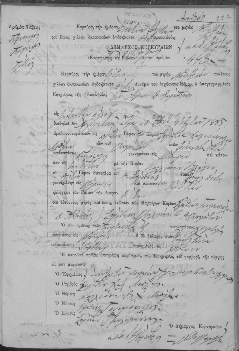 File #1885 - ΛΗΞΙΑΡΧΕΙΟ ΚΕΡΚΥΡΑΣ  [1885]