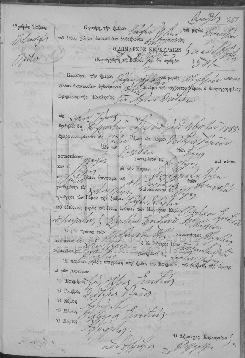 Φάκελος #1885 - ΛΗΞΙΑΡΧΕΙΟ ΚΕΡΚΥΡΑΣ  [1885]