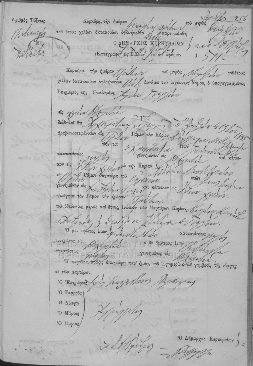 ΛΗΞΙΑΡΧΕΙΟ ΚΕΡΚΥΡΑΣ - Ληξιαρχικές Πράξεις Γάμων  [1841 - 1932]