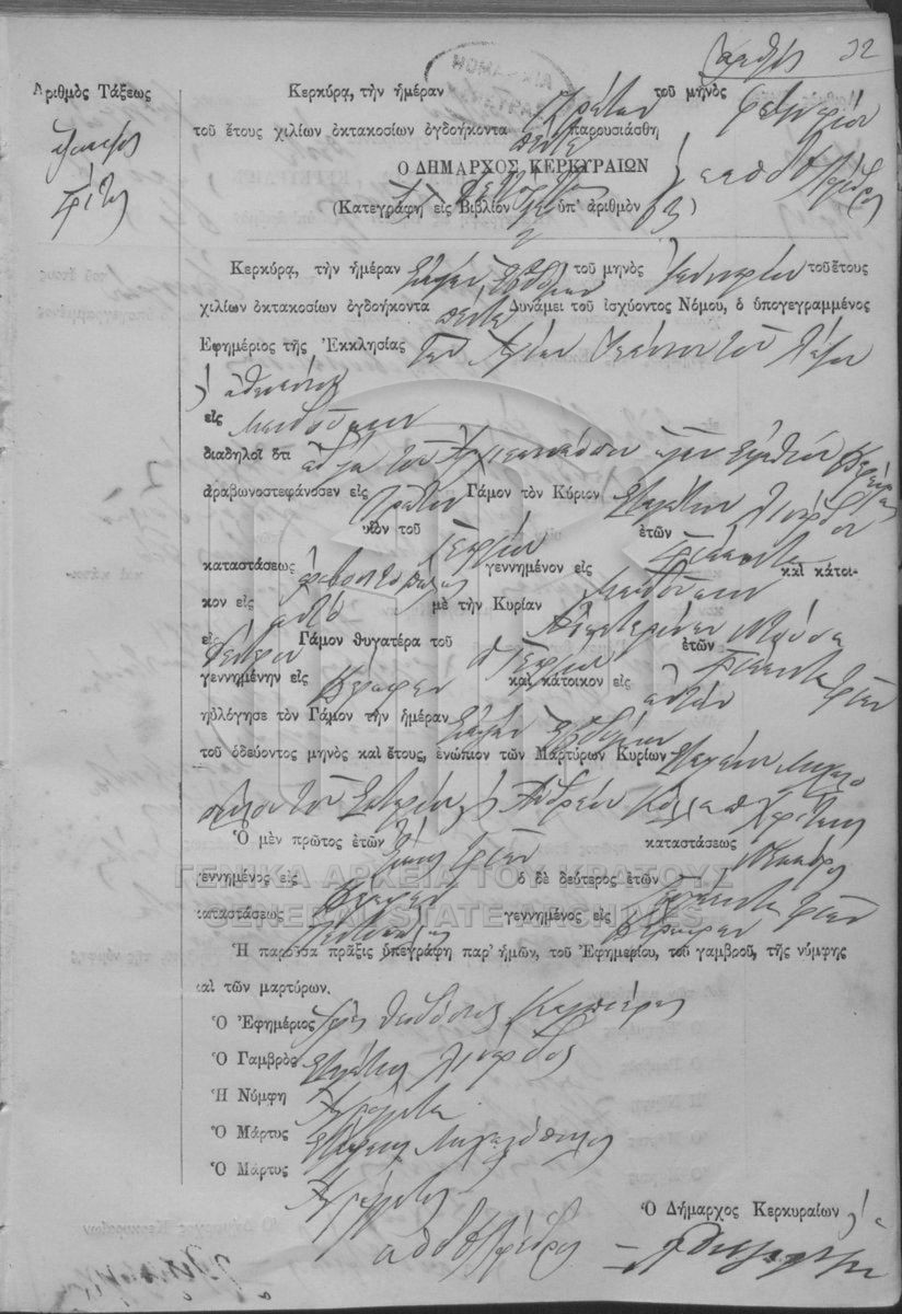 ΛΗΞΙΑΡΧΕΙΟ ΚΕΡΚΥΡΑΣ - Ληξιαρχικές Πράξεις Γάμων  [1841 - 1932]