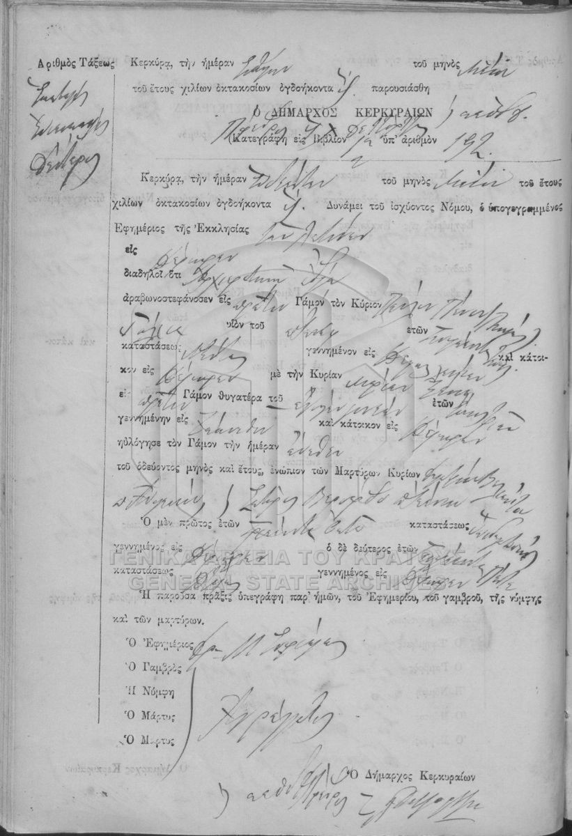 ΛΗΞΙΑΡΧΕΙΟ ΚΕΡΚΥΡΑΣ - Ληξιαρχικές Πράξεις Γάμων  [1841 - 1932]