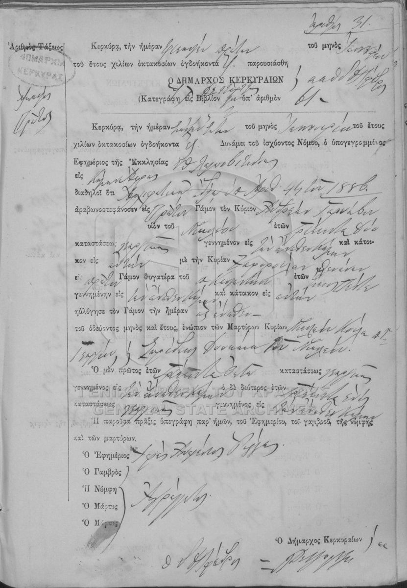 [Αρχείο] GRGSA-KER_REGM00 ΛΗΞΙΑΡΧΕΙΟ ΚΕΡΚΥΡΑΣ - Ληξιαρχικές Πράξεις Γάμων [1841 - 1932] Περιεχόμενα: Αριθμός πράξεων 1 - 324. |