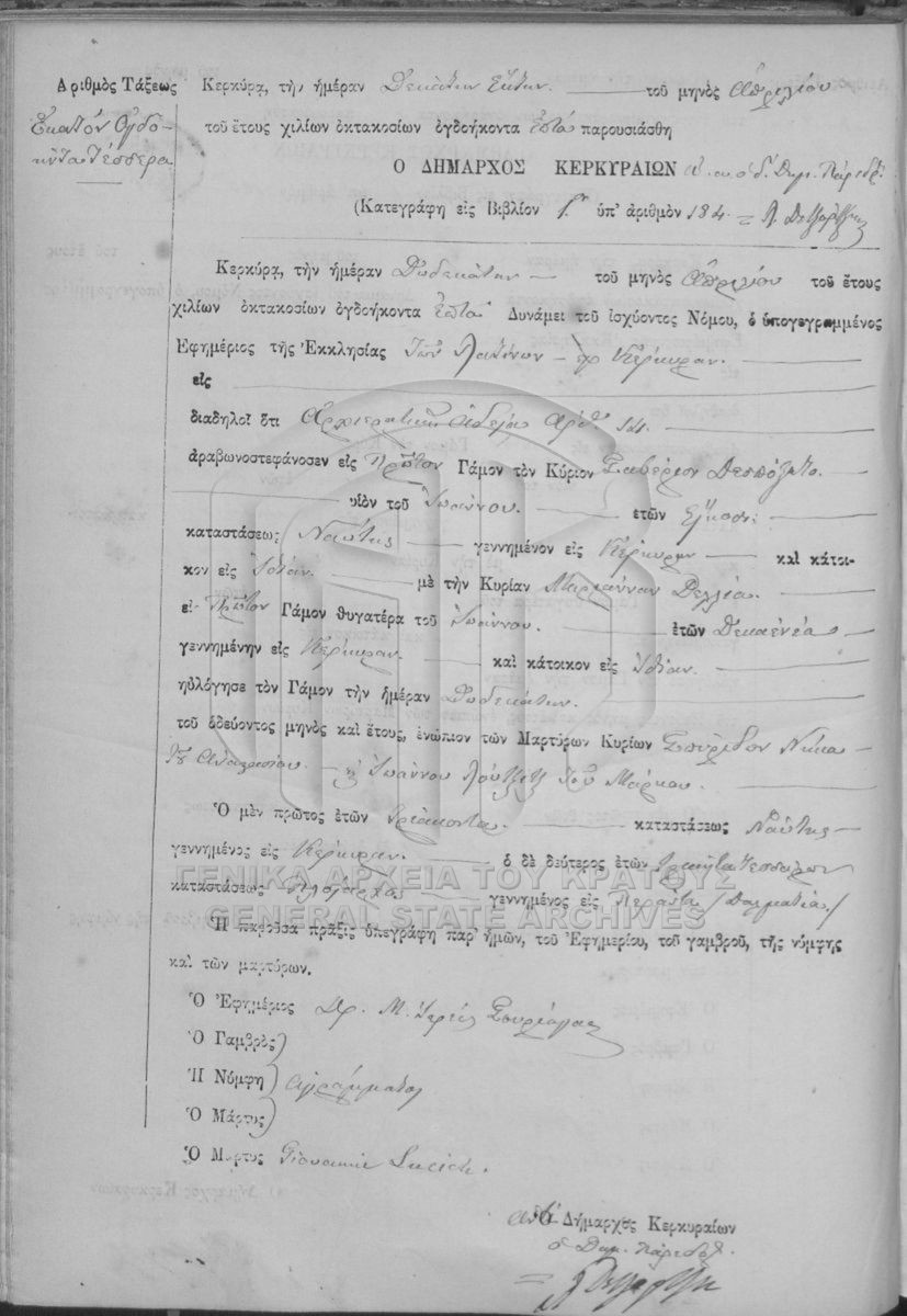 ΛΗΞΙΑΡΧΕΙΟ ΚΕΡΚΥΡΑΣ - Ληξιαρχικές Πράξεις Γάμων  [1841 - 1932]