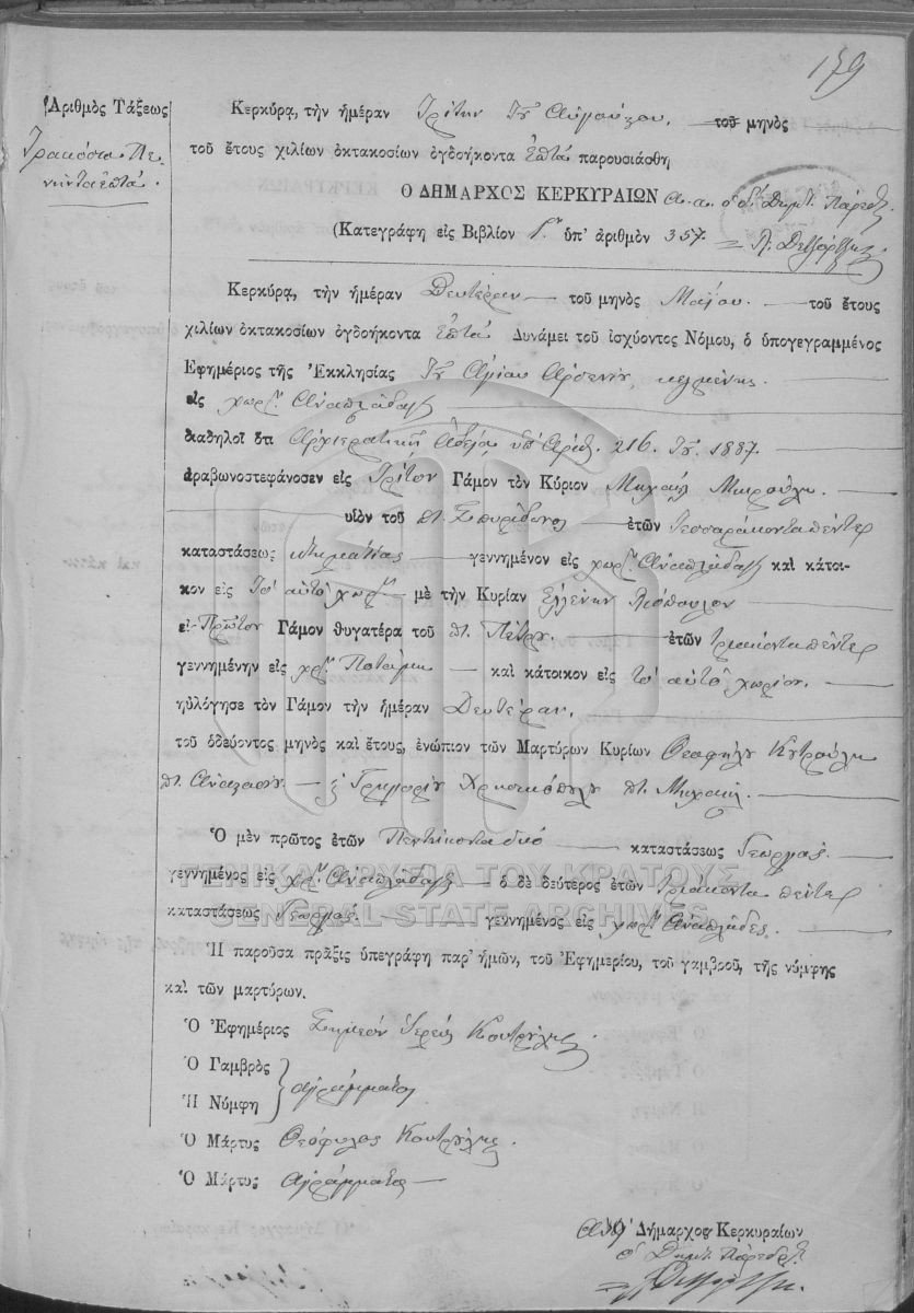 ΛΗΞΙΑΡΧΕΙΟ ΚΕΡΚΥΡΑΣ - Ληξιαρχικές Πράξεις Γάμων  [1841 - 1932]