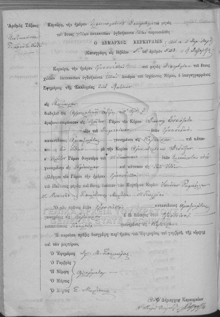 [Fonds] GRGSA-KER_REGM00 ΛΗΞΙΑΡΧΕΙΟ ΚΕΡΚΥΡΑΣ - Ληξιαρχικές Πράξεις Γάμων [1841 - 1932] Contenu: Αριθμός πράξεων 1 - 324. |