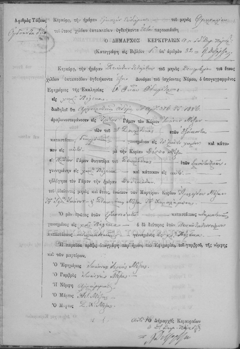 ΛΗΞΙΑΡΧΕΙΟ ΚΕΡΚΥΡΑΣ - Ληξιαρχικές Πράξεις Γάμων  [1841 - 1932]
