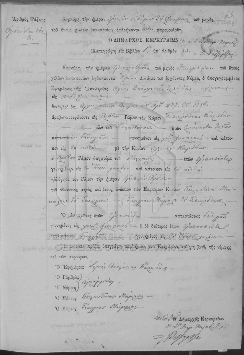 Υποφάκελος #001 - ΛΗΞΙΑΡΧΕΙΟ ΚΕΡΚΥΡΑΣ  [1887]
