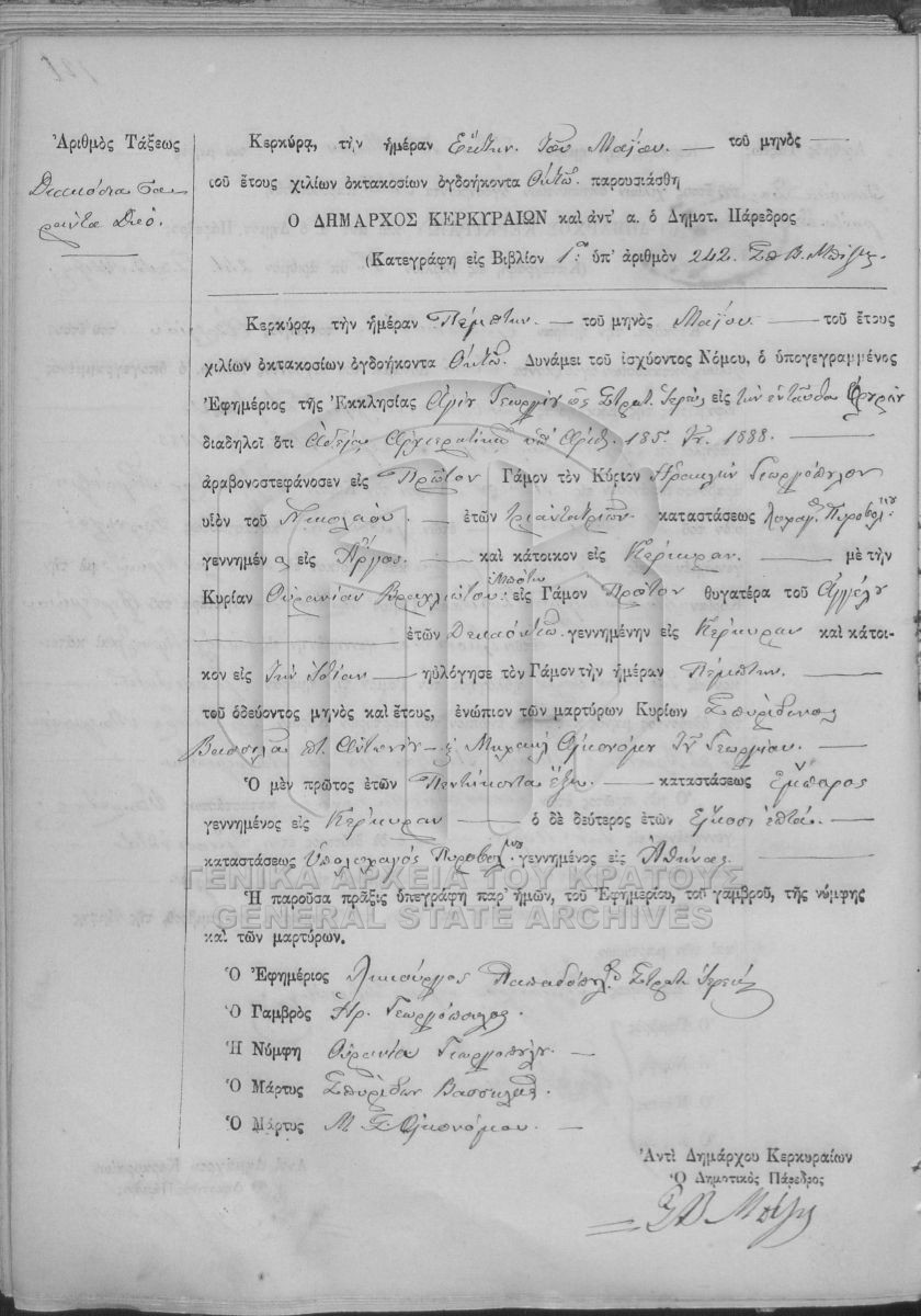[Fonds] GRGSA-KER_REGM00 ΛΗΞΙΑΡΧΕΙΟ ΚΕΡΚΥΡΑΣ - Ληξιαρχικές Πράξεις Γάμων [1841 - 1932] Contents: Αριθμός πράξεων 1 - 324. |