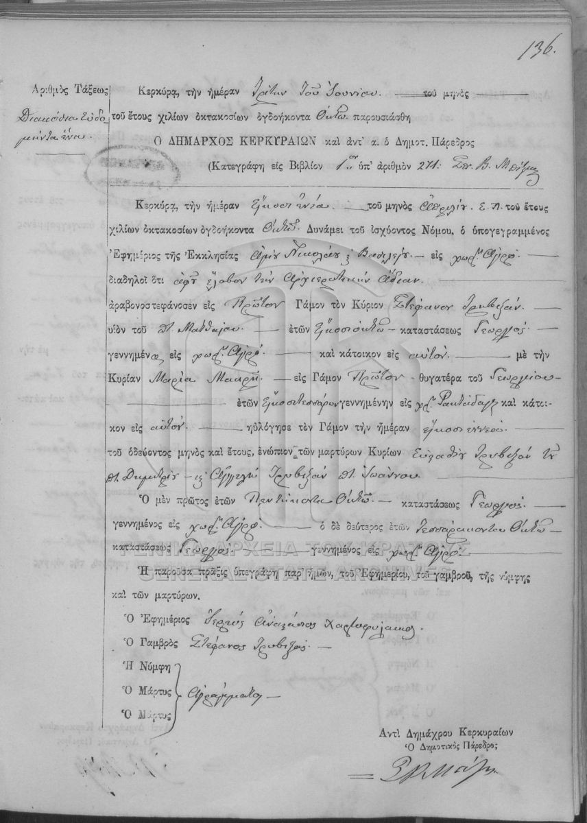 ΛΗΞΙΑΡΧΕΙΟ ΚΕΡΚΥΡΑΣ - Ληξιαρχικές Πράξεις Γάμων  [1841 - 1932]