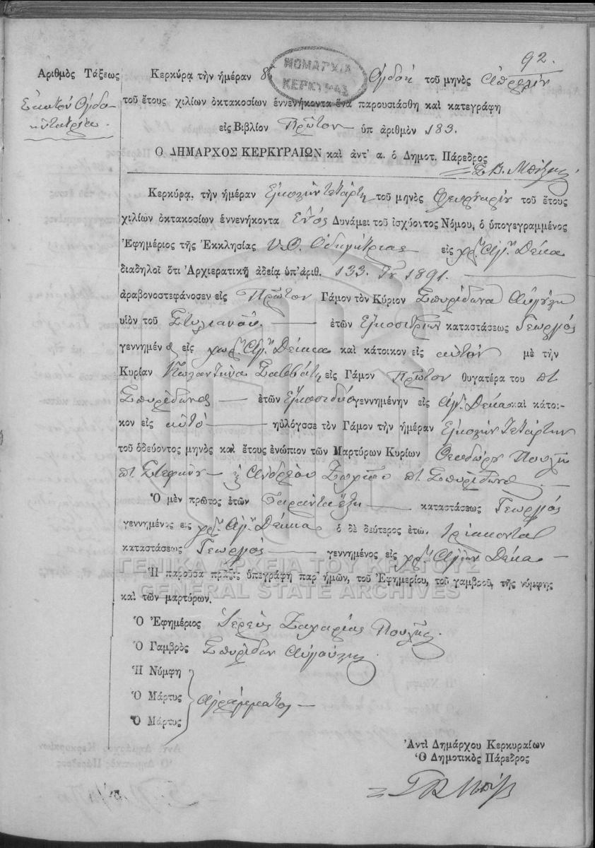 ΛΗΞΙΑΡΧΕΙΟ ΚΕΡΚΥΡΑΣ - Ληξιαρχικές Πράξεις Γάμων  [1841 - 1932]