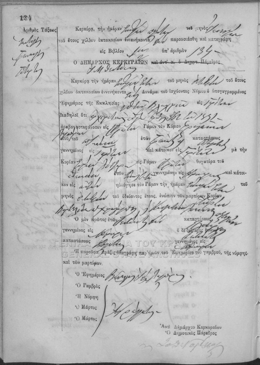 ΛΗΞΙΑΡΧΕΙΟ ΚΕΡΚΥΡΑΣ - Ληξιαρχικές Πράξεις Γάμων  [1841 - 1932]