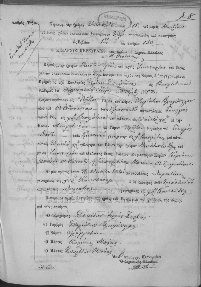 ΛΗΞΙΑΡΧΕΙΟ ΚΕΡΚΥΡΑΣ - Ληξιαρχικές Πράξεις Γάμων  [1841 - 1932]