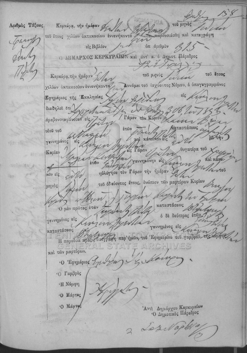 ΛΗΞΙΑΡΧΕΙΟ ΚΕΡΚΥΡΑΣ - Ληξιαρχικές Πράξεις Γάμων  [1841 - 1932]