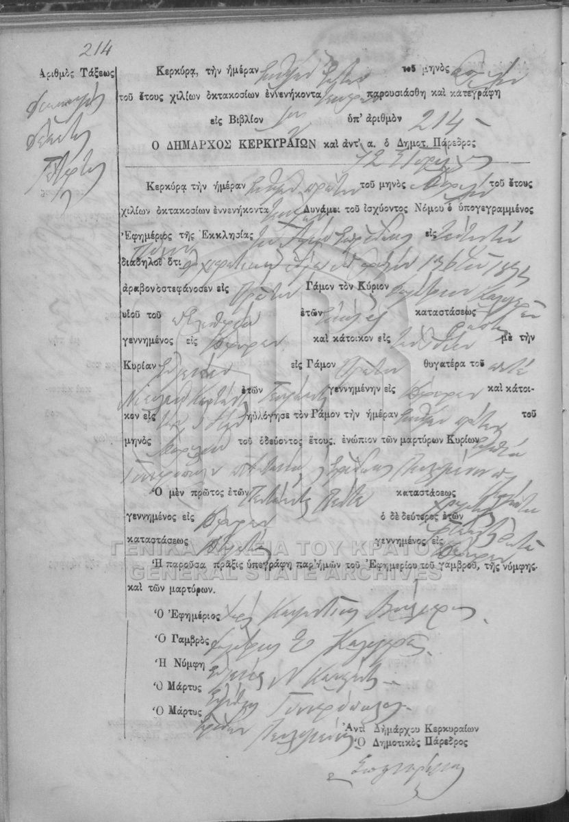 [Fonds] GRGSA-KER_REGM00 ΛΗΞΙΑΡΧΕΙΟ ΚΕΡΚΥΡΑΣ - Ληξιαρχικές Πράξεις Γάμων [1841 - 1932] Contents: Αριθμός πράξεων 1 - 324. |