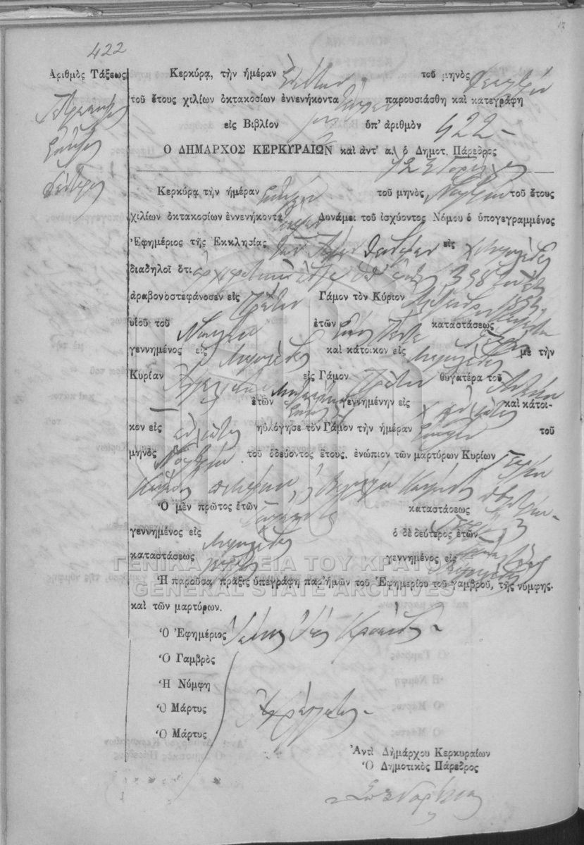 [Fonds] GRGSA-KER_REGM00 ΛΗΞΙΑΡΧΕΙΟ ΚΕΡΚΥΡΑΣ - Ληξιαρχικές Πράξεις Γάμων [1841 - 1932] Contents: Αριθμός πράξεων 1 - 324. |