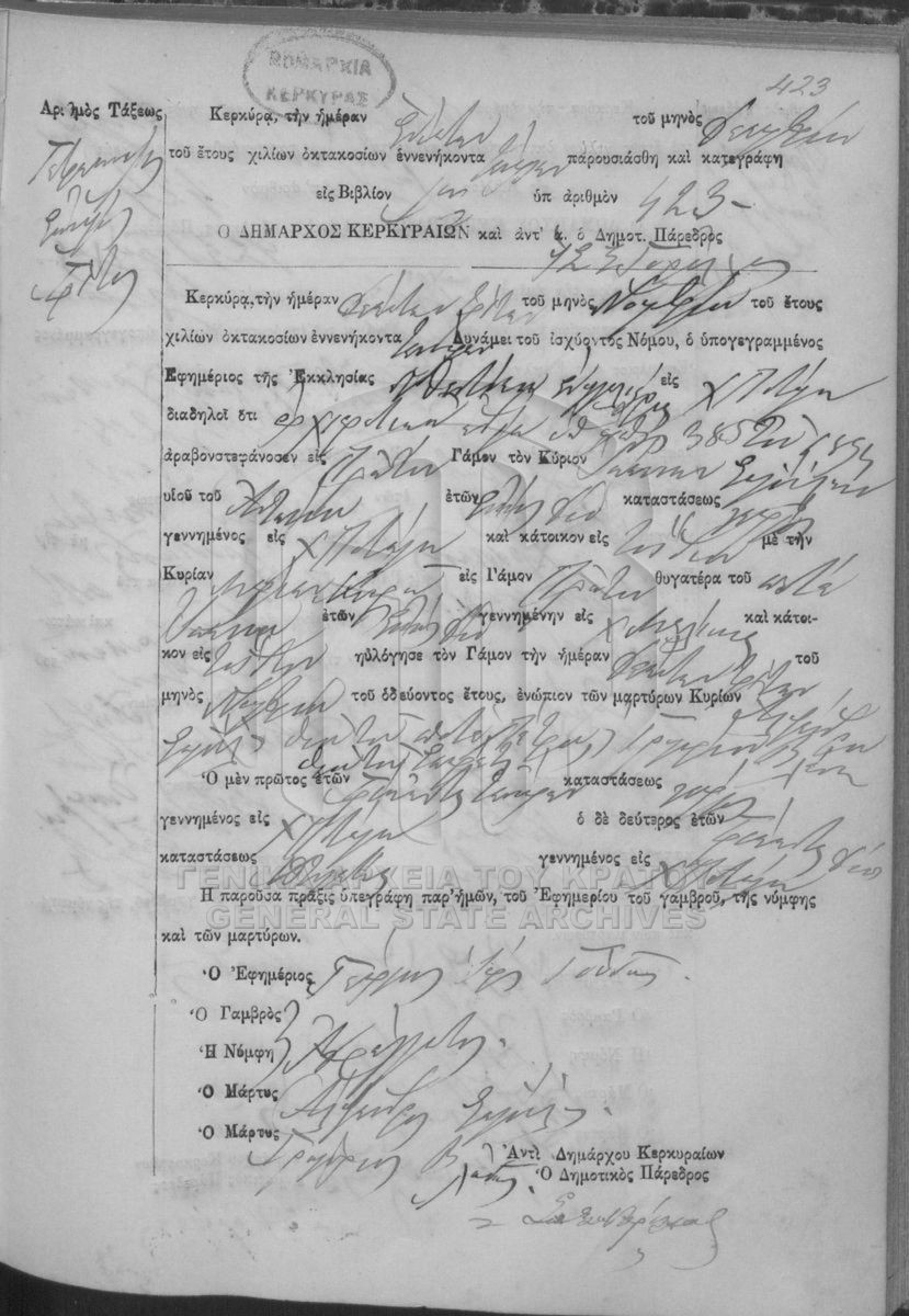 [Subfile] GRGSA-KER_REGM00.00.F001894.SF0001 Subfile #001 - ΛΗΞΙΑΡΧΕΙΟ ΚΕΡΚΥΡΑΣ [1894] Αριθμός πράξεων 1 - 432. |