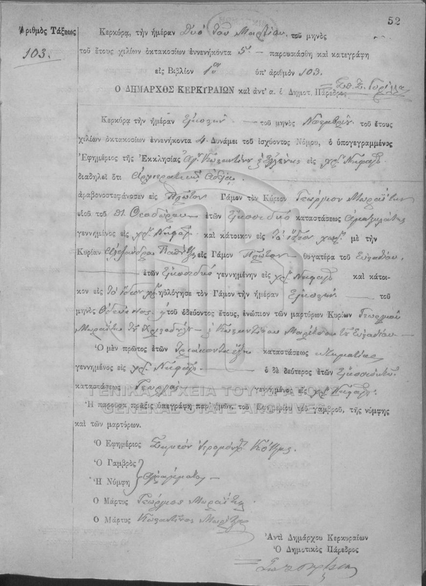 ΛΗΞΙΑΡΧΕΙΟ ΚΕΡΚΥΡΑΣ - Ληξιαρχικές Πράξεις Γάμων  [1841 - 1932]
