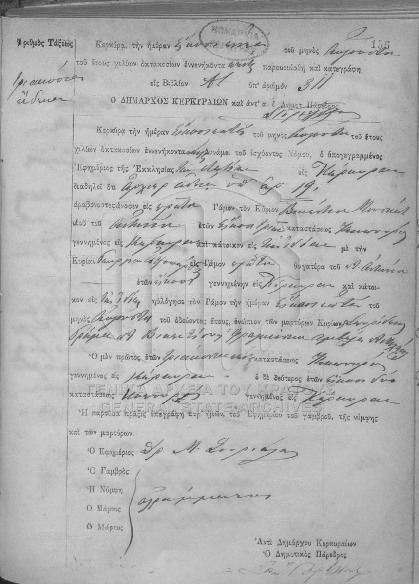 ΛΗΞΙΑΡΧΕΙΟ ΚΕΡΚΥΡΑΣ - Ληξιαρχικές Πράξεις Γάμων  [1841 - 1932]