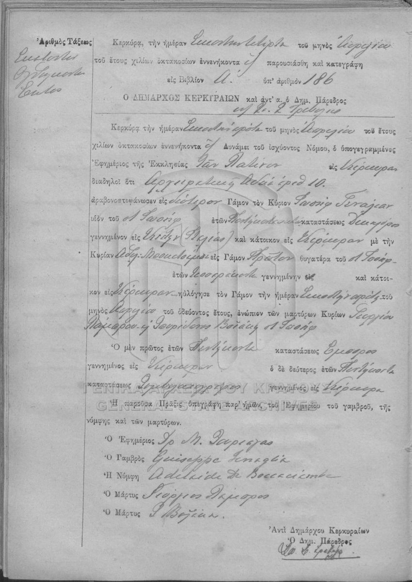 ΛΗΞΙΑΡΧΕΙΟ ΚΕΡΚΥΡΑΣ - Ληξιαρχικές Πράξεις Γάμων  [1841 - 1932]