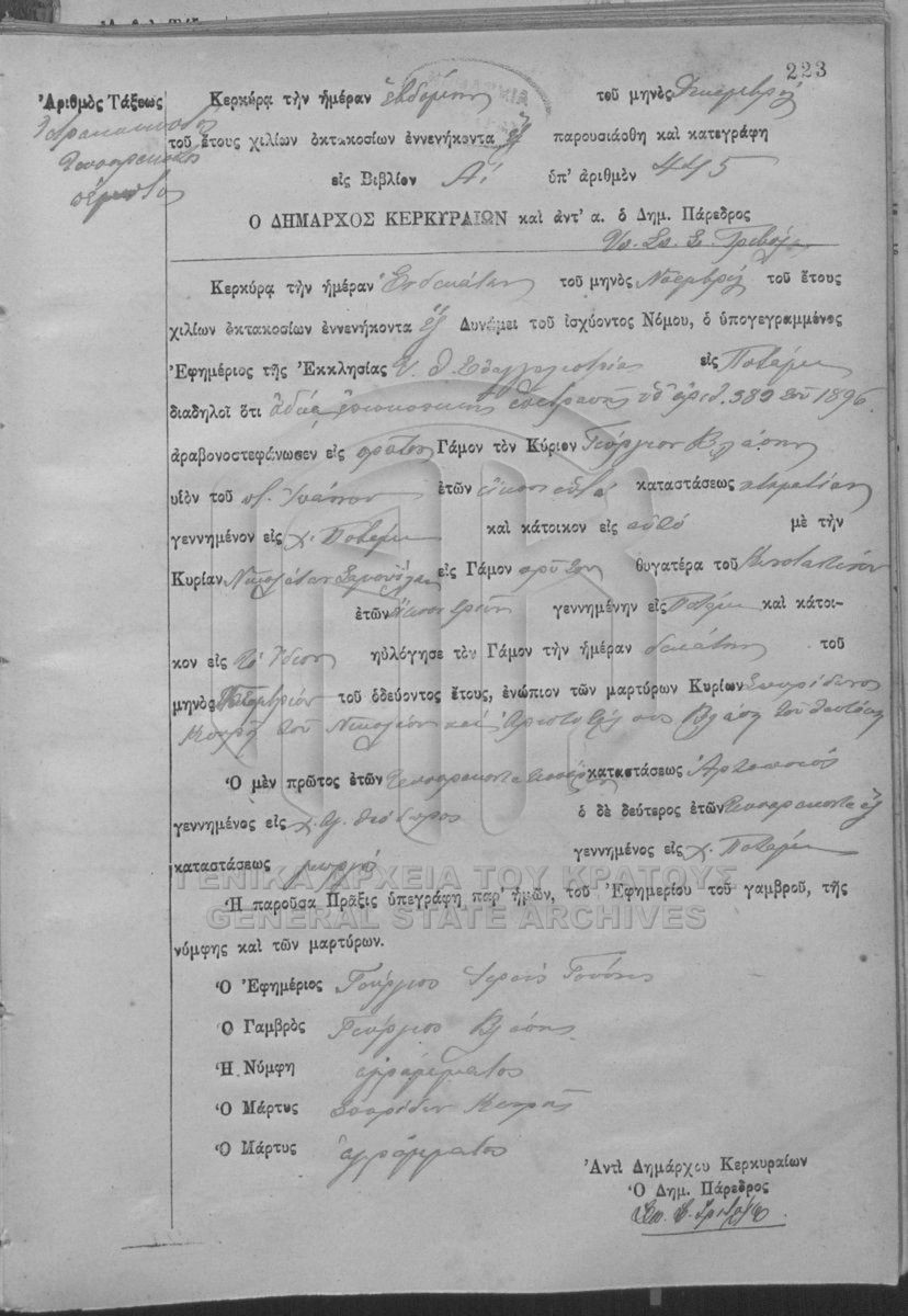 Υποφάκελος #001 - ΛΗΞΙΑΡΧΕΙΟ ΚΕΡΚΥΡΑΣ  [1896]