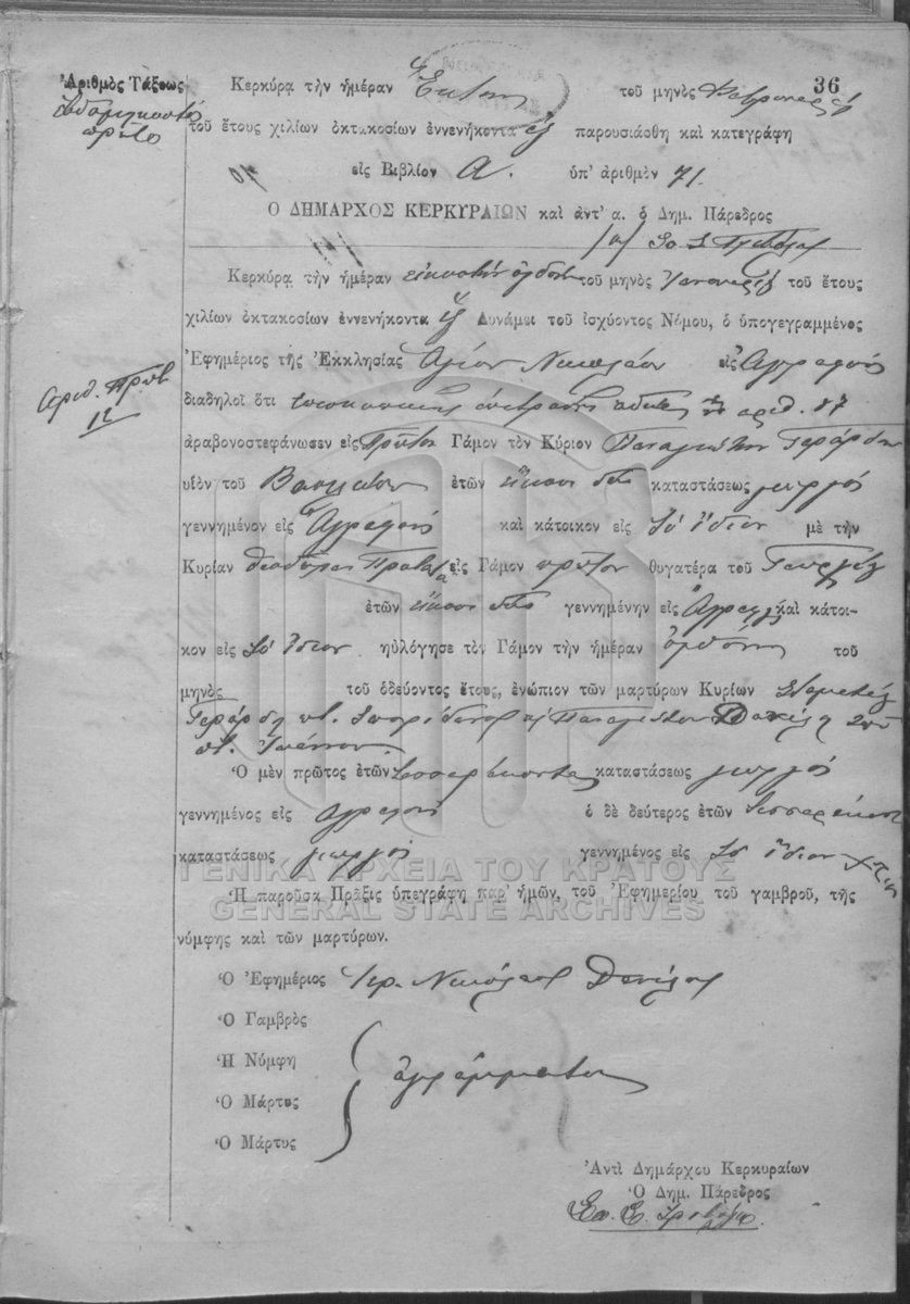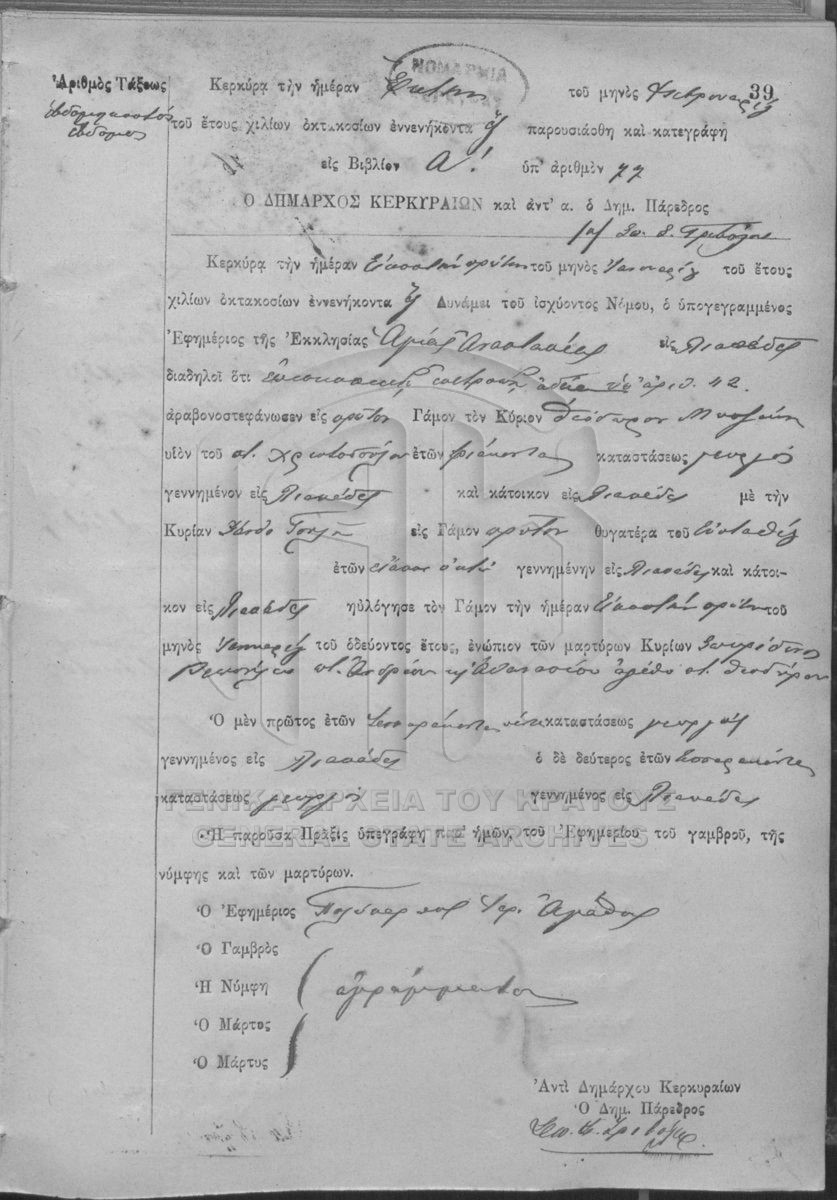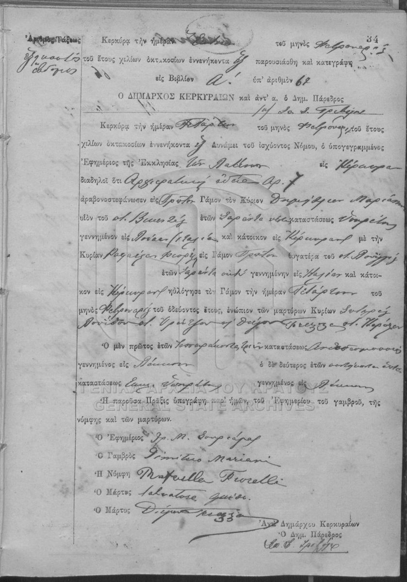 ΛΗΞΙΑΡΧΕΙΟ ΚΕΡΚΥΡΑΣ - Ληξιαρχικές Πράξεις Γάμων  [1841 - 1932]