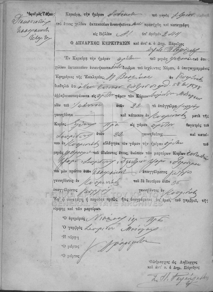 ΛΗΞΙΑΡΧΕΙΟ ΚΕΡΚΥΡΑΣ - Ληξιαρχικές Πράξεις Γάμων  [1841 - 1932]