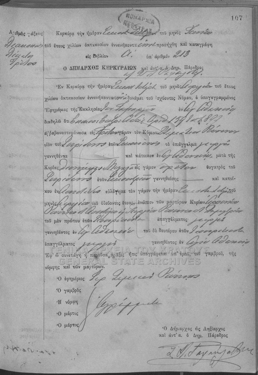 ΛΗΞΙΑΡΧΕΙΟ ΚΕΡΚΥΡΑΣ - Ληξιαρχικές Πράξεις Γάμων  [1841 - 1932]