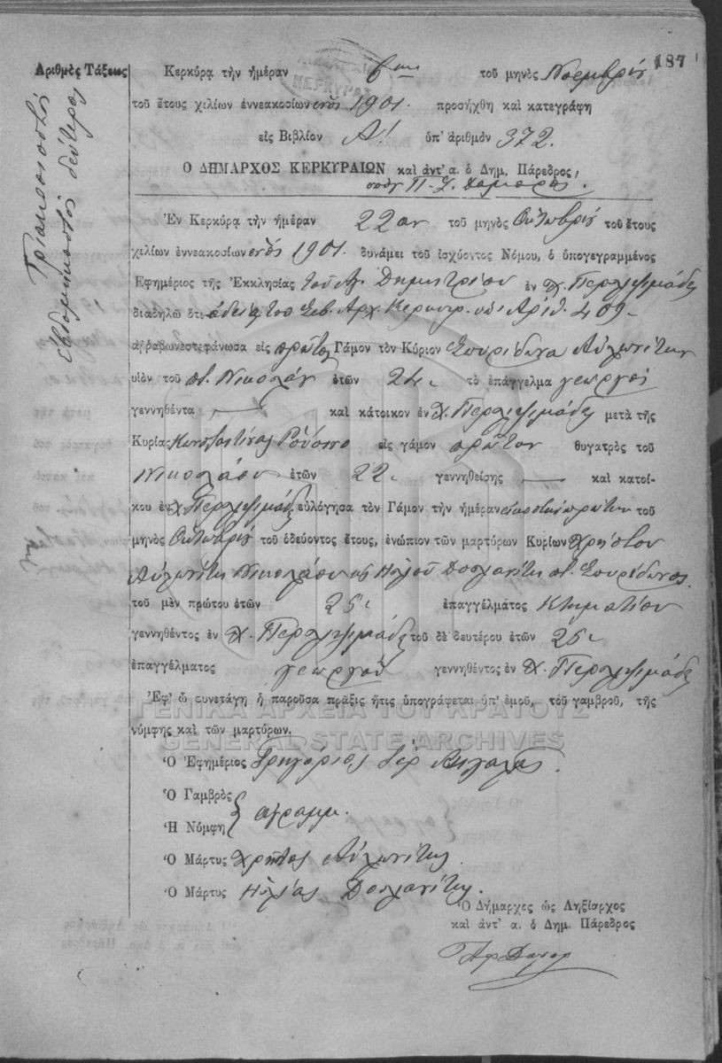 [Αρχείο] GRGSA-KER_REGM00 ΛΗΞΙΑΡΧΕΙΟ ΚΕΡΚΥΡΑΣ - Ληξιαρχικές Πράξεις Γάμων [1841 - 1932] Περιεχόμενα: Αριθμός πράξεων 1 - 324. |