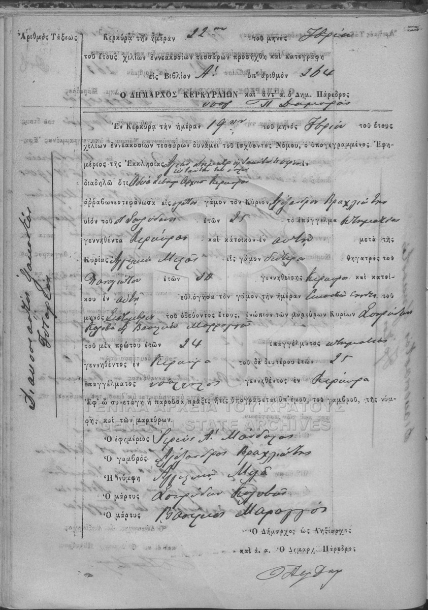 ΛΗΞΙΑΡΧΕΙΟ ΚΕΡΚΥΡΑΣ - Ληξιαρχικές Πράξεις Γάμων  [1841 - 1932]