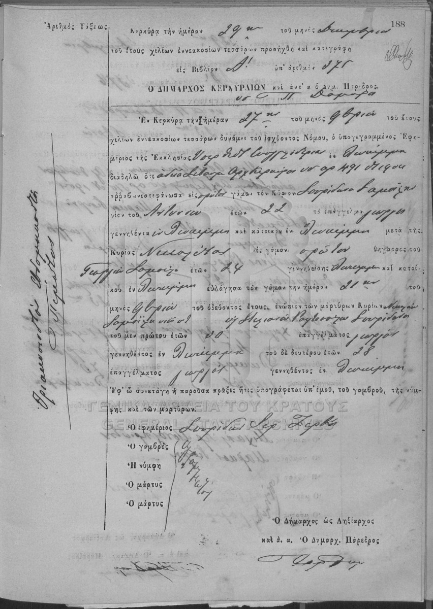 ΛΗΞΙΑΡΧΕΙΟ ΚΕΡΚΥΡΑΣ - Ληξιαρχικές Πράξεις Γάμων  [1841 - 1932]
