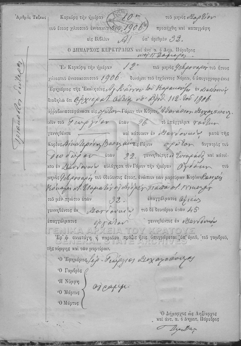 [Fonds] GRGSA-KER_REGM00 ΛΗΞΙΑΡΧΕΙΟ ΚΕΡΚΥΡΑΣ - Ληξιαρχικές Πράξεις Γάμων [1841 - 1932] Contents: Αριθμός πράξεων 1 - 324. |