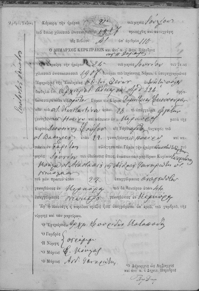 Fichier #1907 - ΛΗΞΙΑΡΧΕΙΟ ΚΕΡΚΥΡΑΣ  [1907]