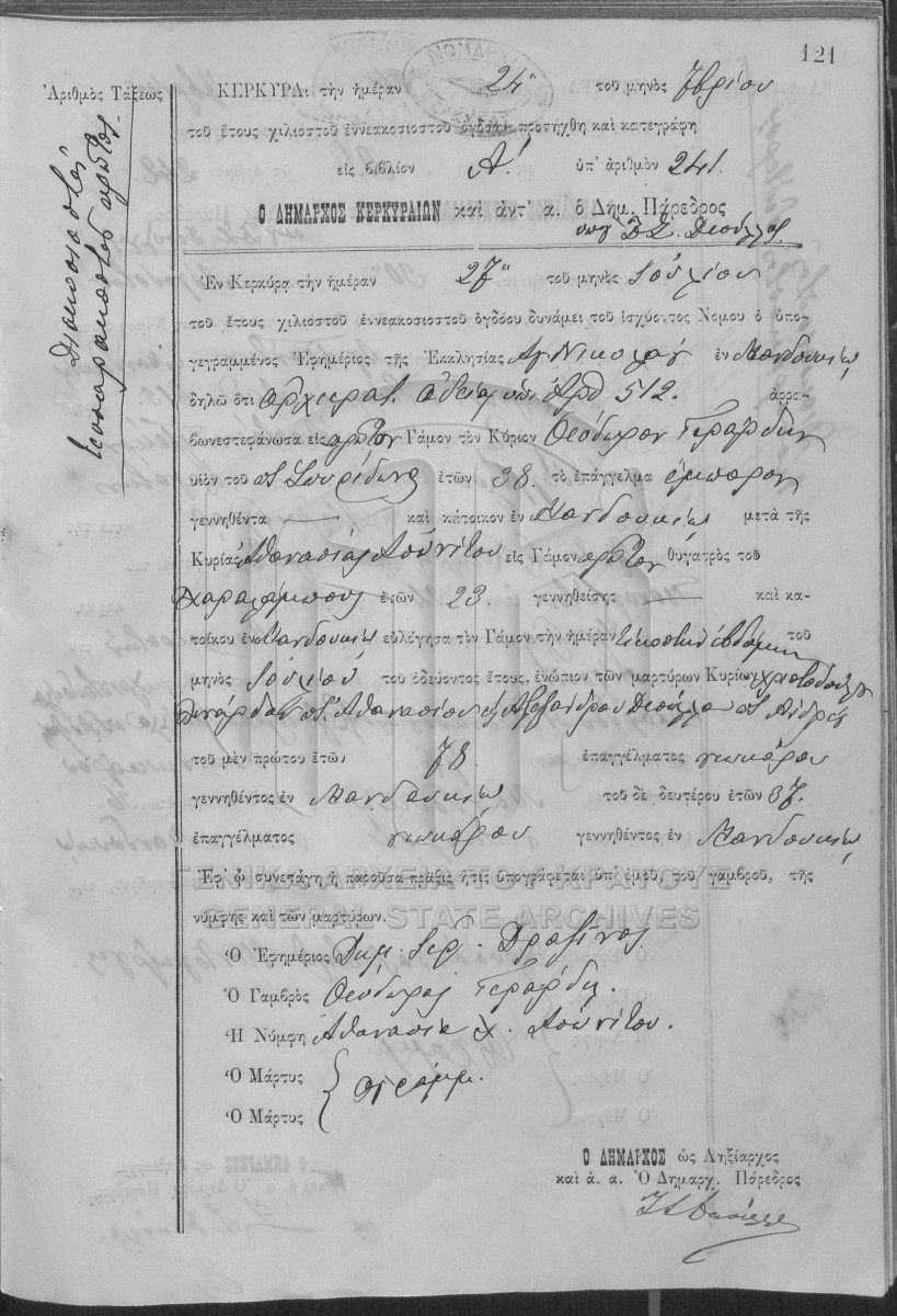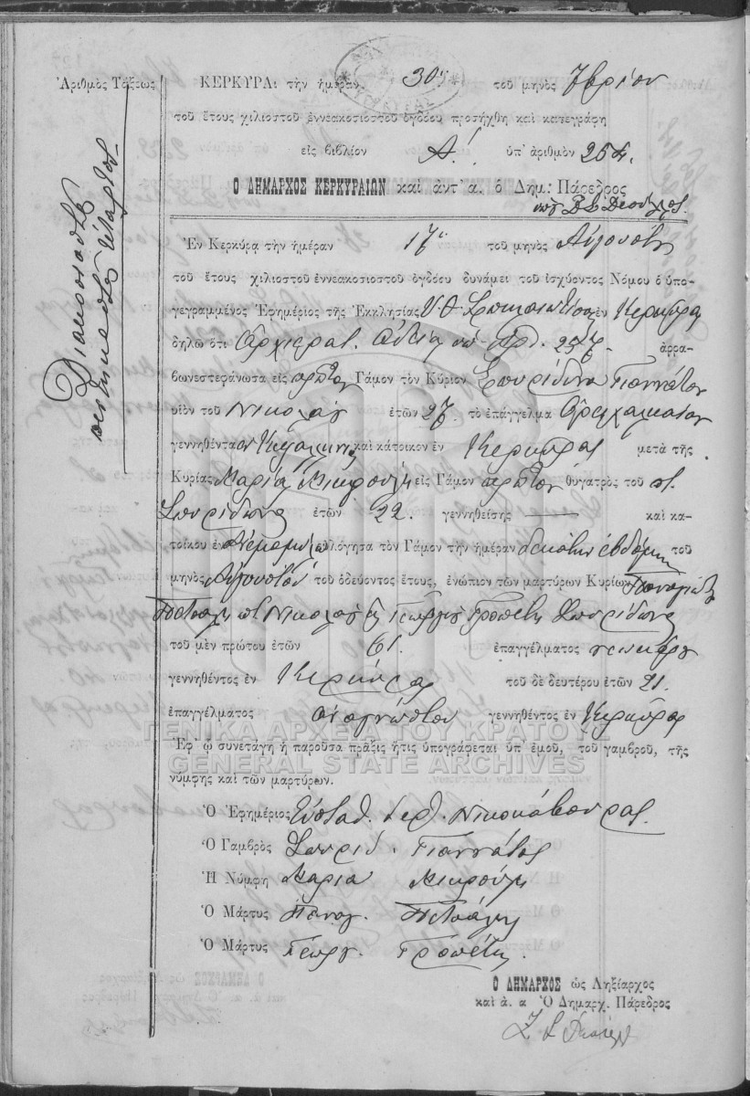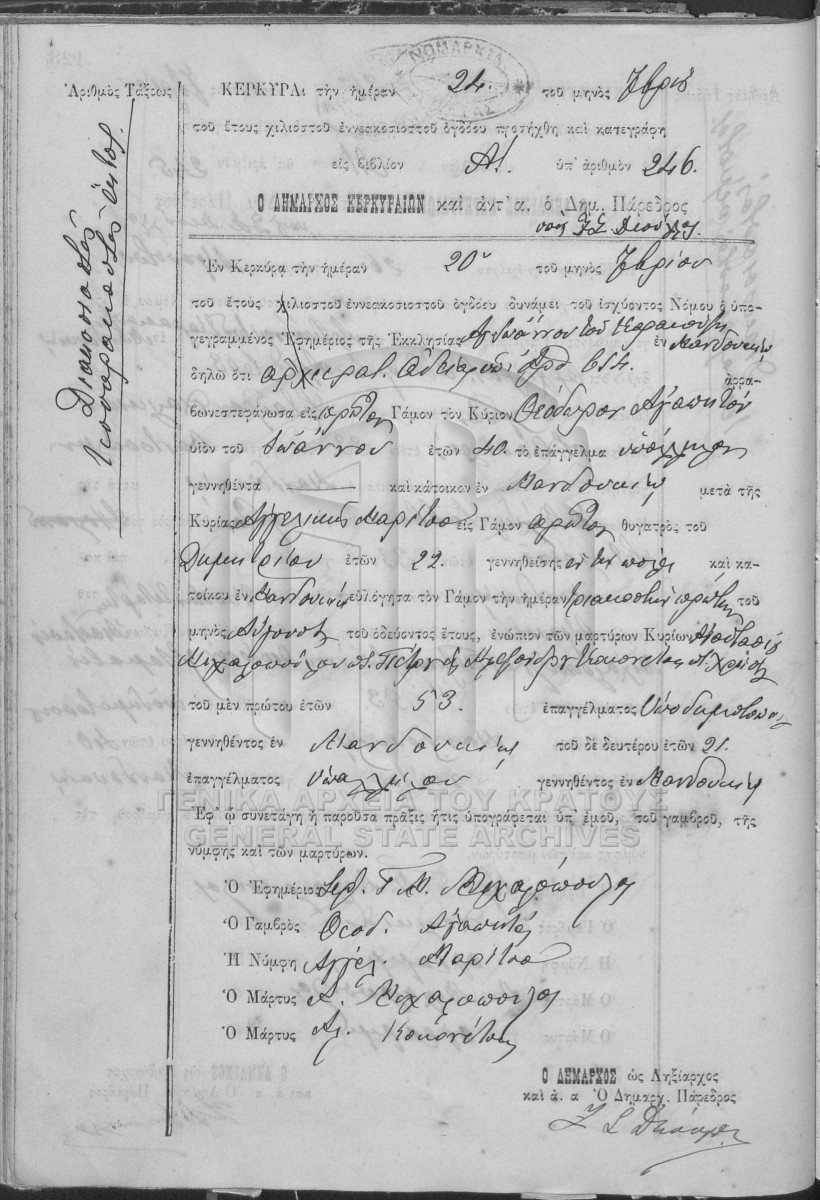 ΛΗΞΙΑΡΧΕΙΟ ΚΕΡΚΥΡΑΣ - Ληξιαρχικές Πράξεις Γάμων  [1841 - 1932]