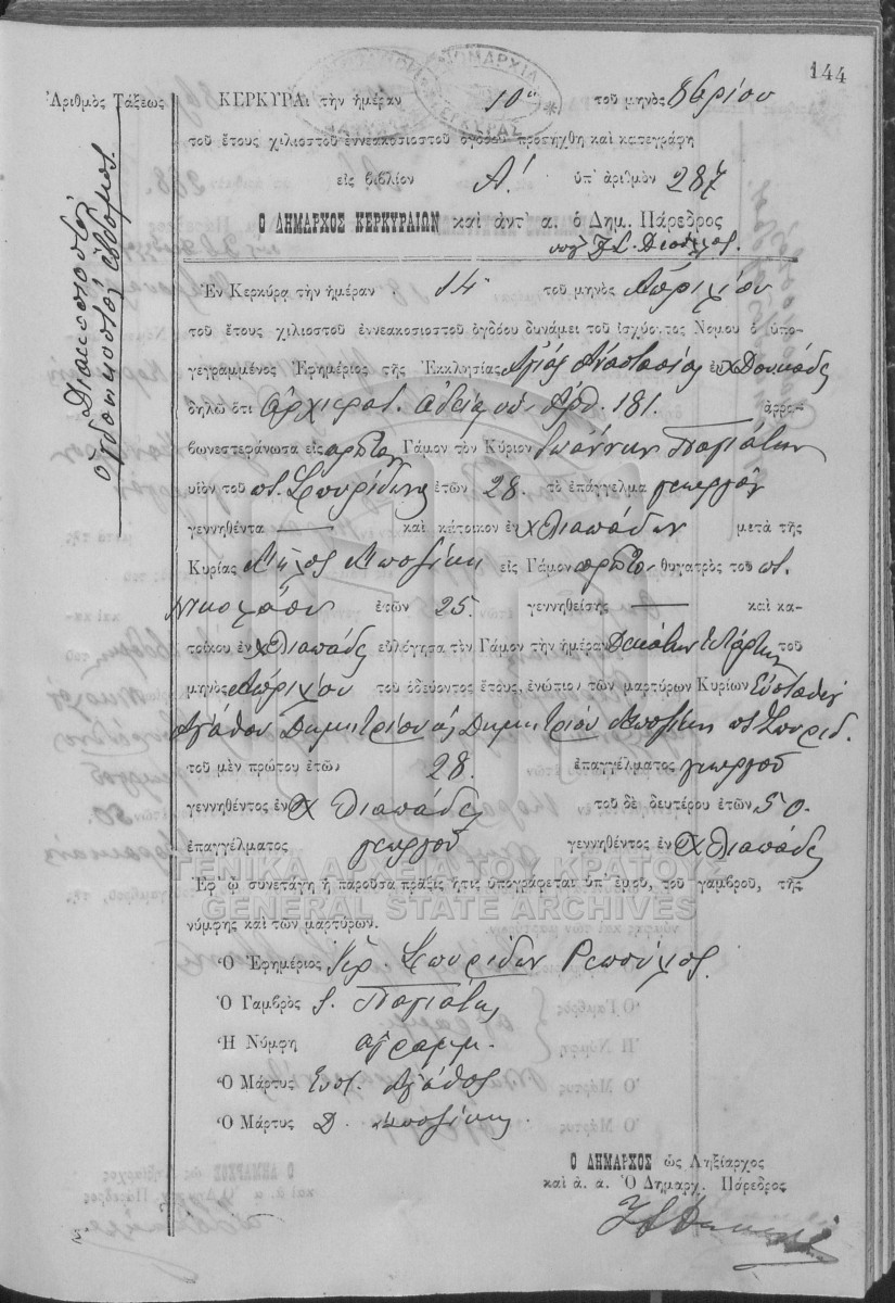 ΛΗΞΙΑΡΧΕΙΟ ΚΕΡΚΥΡΑΣ - Ληξιαρχικές Πράξεις Γάμων  [1841 - 1932]