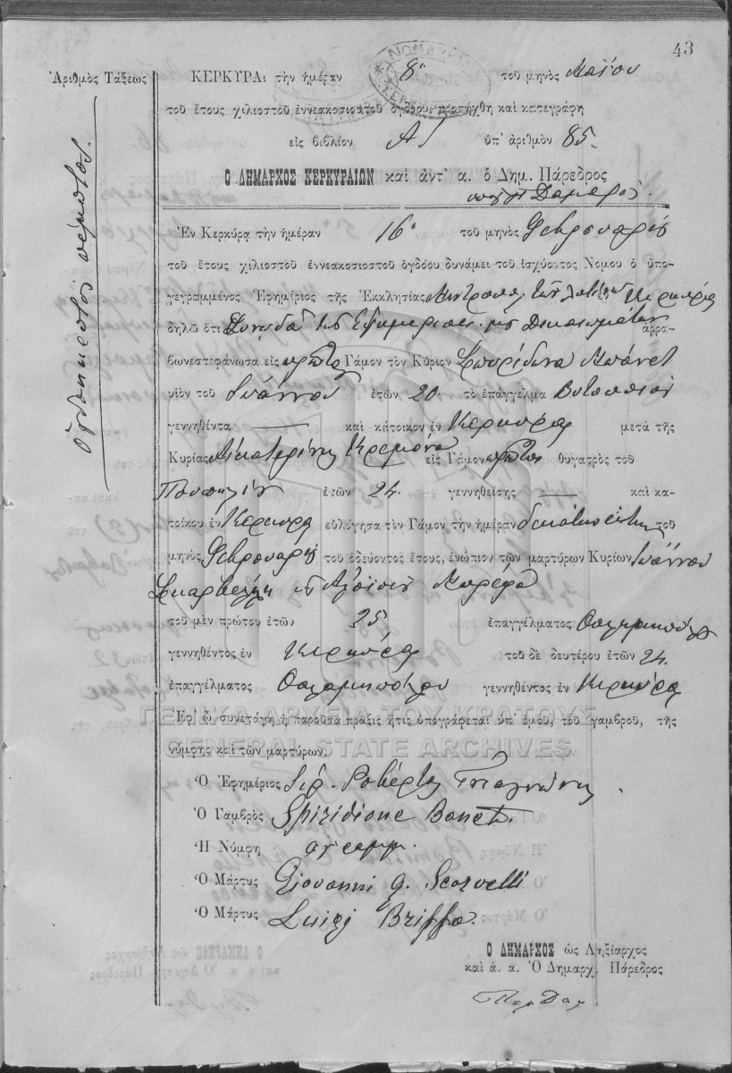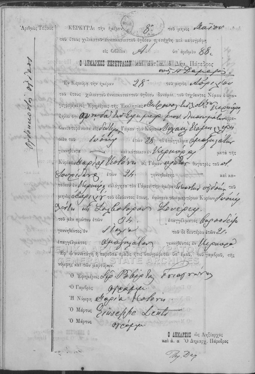 ΛΗΞΙΑΡΧΕΙΟ ΚΕΡΚΥΡΑΣ - Ληξιαρχικές Πράξεις Γάμων  [1841 - 1932]