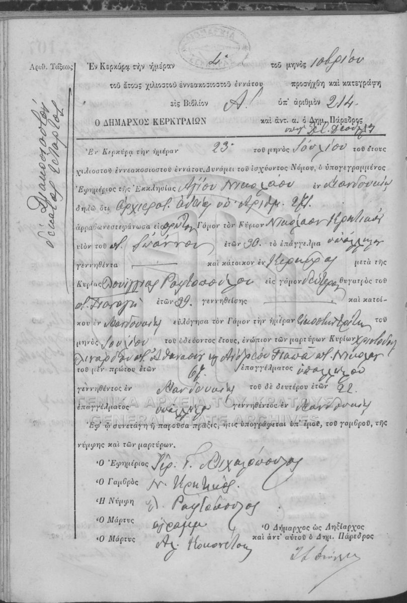 ΛΗΞΙΑΡΧΕΙΟ ΚΕΡΚΥΡΑΣ - Ληξιαρχικές Πράξεις Γάμων  [1841 - 1932]